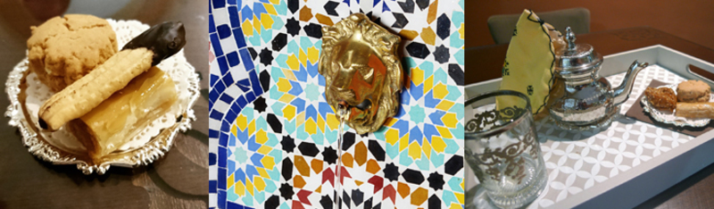 Accompagnés d'un délicieux thé à la menthe, au jasmin, d'un café ou d'un chocolat chaud savoureux,  des douceurs marocaines traditionnelles et artisanales qui raviront les fins palais, au milieu d'un décor oriental raffiné et d'une ambiance chaleureuse et zen.
