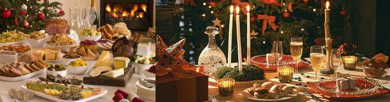 chacun apportent mets de fête et champagne