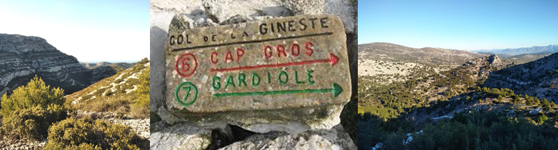 C'est une belle randonnée relativement facile qui part inhabituellement du col de la Gineste à 327m d'altitude, route célèbre pour sa beauté sauvage, son mythique semi-marathon Marseille-Cassis... Vous cheminerez au cœur-même du Massif des Calanques sur des chemins peu fréquentés mais surprenants par leur diversité minérale et végétale. Dès le départ, le regard sera surpris par les vues splendides sur Marseille et son littoral, Marseilleveyre, la route de la Gineste qui serpente au cœur des vallons qui mènent à la Gardiole et au camp de Carpiagne.