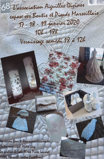 L'association Aiguilles Divines propose à nos adhérents de se retrouver ensemble et découvrir son exposition de Boutis et Piqués Marseillais !