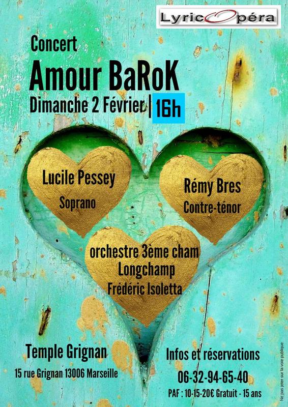 L'association LyricOpéra vous propose un concert "Amour BaRok". De la musique baroque... mais pas que... Airs et duos du grand répertoire d'Opéra, accompagnés par l'orchestre de la 3ème CHAM dirigé par Frédéric Isoletta.
