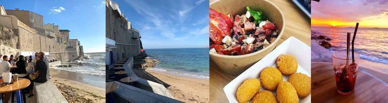 Des tapas et des recettes locales : sardines grillées, des couteaux persillés, des supions frits, des panisses et des moules frites. Tout cela accompagné d’un bon verre de vin ou d’un cocktail. Loin du centre-ville et des plages bondées, ce petit “snack de plage” saura vous faire passer de bons moments en famille ou entres amis, dans un cadre idyllique.Merci à madeinmarseille.net/ pour leur excellent site d'information sur Marseille !