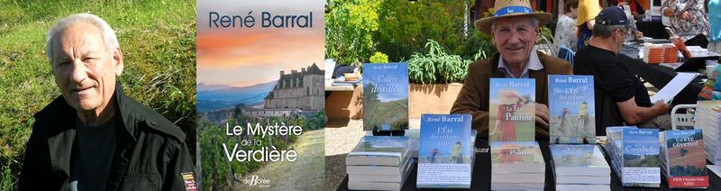 Message de Marianne Ruelle, présidente de Marseille Autrement :René Barral qui écrit des romans de terroirs depuis qu'il est à la retraite, ne peut pas nous proposer une dédicace de son nouveaux roman : "Le mystère de a Verdière", compte-tenu du contexte sanitaire. Mais rien ne vous empêche d'aller acheter ce roman passionnant à la librairie Maupetit, chacun au moment que vous choisirez. Le livre est aussi disponible à la librairie Prado-Paradis et au centre culturel Leclercq Sormiou et on peut le commander dans n’importe quelle librairie en donnant le titre, le nom de l'auteur et l'éditeur (Editions de Borée).