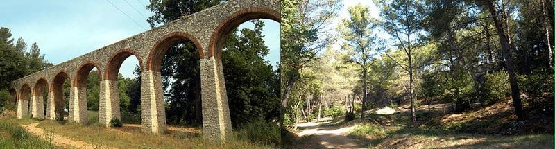 Le sentier passe sous un très bel aqueduc lié au canal de Marseille puis longe le circuit de l'eau.