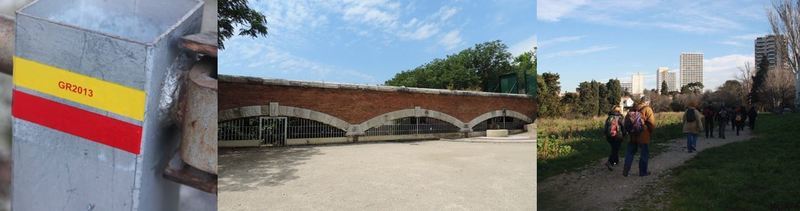 Daniel nous présente le parcours :Notre départ se situe au Rond-point de Mazargues devant l’Obélisque, ce qui sera l’occasion d’évoquer l’histoire du quartier et de ses occupants. Puis, nous cheminerons le long de la partie urbaine du GR 2013, par des trottoirs, des espaces en friche, des chemins de traverse, et par des sentes à travers des collines, pour vous donner un aspect inaccoutumé de nos quartiers de Mazargues, Sainte Marguerite, Saint Tronc, les Trois Ponts et Saint Loup. Nous examinerons comment des ensembles de bâtiments, logements, et bureaux créés après-guerre (Michelet Saint-Jacques, Château Sec, Bureaux EDF du Pôle Nucléaire, l’Armandiére, Castelroc...) ont modifié profondément l’urbanisme et se sont substitués à des bastides et des « campagnes » très nombreuses aux XVIIIème et XIXème siècles, sur notre parcours. Nous ferons un arrêt pour le pique-nique dans la pinède de Castelroc. Nous évoquerons également le futur, avec la traversée de ces quartiers par la rocade du Boulevard Urbain Sud (BUS) et son incidence, parfois fâcheuse, sur certains lieux (Jardin des Familles, Parc de la Mathilde, entre autre). Un sentier le long de la branche terminale du Canal de Marseille depuis la place des Trois Ponts, nous permettra d’évoquer l’apport de cet ouvrage dans les zones urbaines des quartiers Sud de notre ville. Nous terminerons notre promenade par la descente du Boulevard Queirel, occasion de parler de l’urbanisation pavillonnaire qui s’est imposée avec l’industrialisation de la zone (Rivoire et Carret en particulier) nécessitant la création d’un nombre important de petits logements économiques (Cité-jardin "La Gardanne"), "les Jardins de la Pomme" et d’autres implantations plus clairsemées).