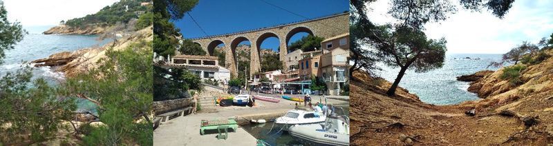 En chemin : trois petits ports du bout du monde, deux charmantes calanques très peu connues et au loin les deux viaducs du chemin de fer.Sur le chemin, un long escalier bétonné à monter pour pouvoir profiter du cadre exceptionnel de Méjean.