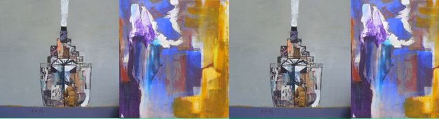 Une adhérence artiste expose (acryliques et collages sur toiles)