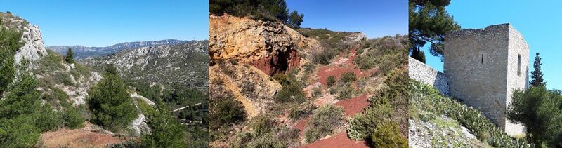 Ce parcours vous mènera d'abord aux anciennes mines de bauxite d'Allauch et aux zones de scories dont le rouge tranche sur la pierre calcaire.