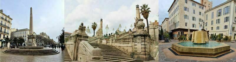 Ce sera ensuite Notre Dame du Mont, le cours Lieutaud (1789), Castellane et la fontaine Cantini (1911).Vous reviendrez par la Préfecture, un chef d'œuvre du Second Empire, la place et la fontaine Estragin (1802), le cours Pierre Puget (1800).