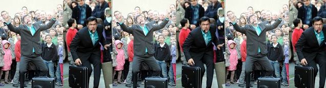 Cette fausse vente de l’espace public, nouvelle création de Thé à la Rue, interroge avec cynisme la notion de bien public en la mettant en parallèle avec le monde impitoyable des affaires.