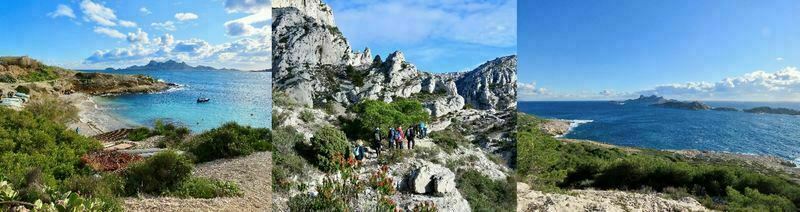 Le chemin longe ensuite le long rocher des Goudes et offre un panorama sur l'archipel de Riou...