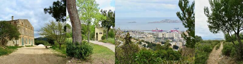 Dès les anciens piliers du domaine, le paysage devient sauvage puis le panorama sur la rade de Marseille se déroule en contrebas.