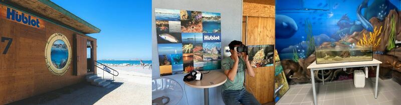 Le Hublot comporte trois zones distinctes.Dans la première, des photos grand format des récifs artificiels du Prado sont exposés.