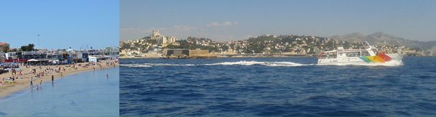 De la plage, on a une belle vue sur la rade de Marseille et sur les Iles de Frioul.