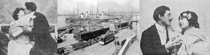En illustration : des couples d'amoureux du XIXème siècle, une vue du port de Marseille, la gare Saint-Charles de Marseille, Flaubert jeune, Stendhal jeune, le livre de nouvelles.