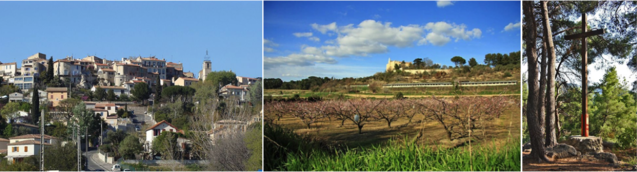 Après une visite du village nous rejoindrons le chemin campagnard qui suit le canal et domine Les Caillols. Le panorama est fort beau.
