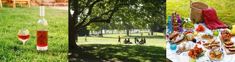 Chacun apporte mets et boissons à partager sur l'herbe