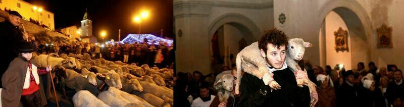 Au son des tambourinaires, les bergers se rendent avec leurs moutons à la messe de minuit pour honorer la naissance de l'enfant Jésus.