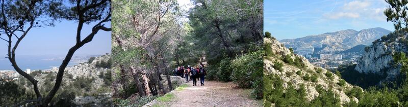 Au départ du Lycée de Marseilleveyre, vous gagnerez rapidement les collines où un sentier vous mènera dans les bois.Vous monterez progressivement jusqu'au réservoir qui alimente le Roy d'Espagne.