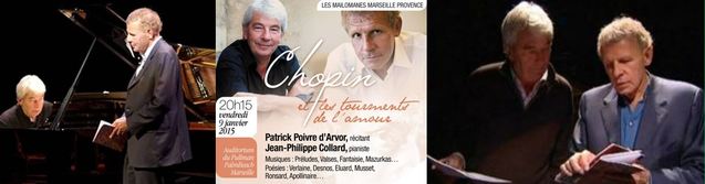 Gérard Abrial de l'association "Les Mailomanes" vous propose une nouvelle soirée musique avec Patrick Poivre d’Arvor et Jean-Philippe Collard, des amis d’enfance qui partagent une même passion pour la musique romantique et la poésie française.