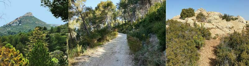 Encore un petit effort et vous retrouverez une bonne piste, utilisée pour le service des pylônes électriques.De là, une grande vue sur Marseille au loin.