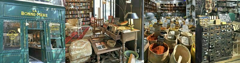 On s'y équipe en coutellerie, quincaillerie, casserolerie, droguerie, jouets anciens, vêtements, serrurerie, parfumerie, savonnerie, jardinerie... Il y a aussi un espace muséal rétro.