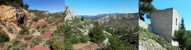 Ce parcours vous mènera d'abord aux anciennes mines de bauxite d'Allauch et aux zones de scories dont le rouge tranche sur la pierre calcaire.