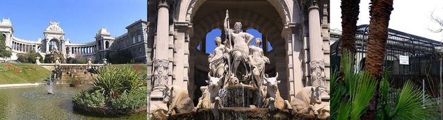 • Le monumental château d'eau édifié pour la commémoration de l'arrivée des eaux de la Durance à Marseille,