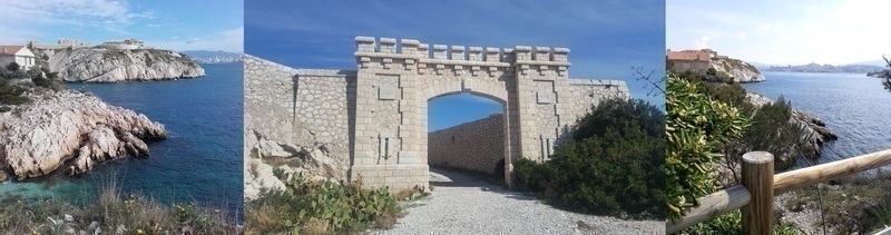 Depuis fort Ratonneau et sa porte de 1886, le panorama sur le triangle "Caroline, Bonne Mère et château d'If" est très photographié. C'est un vrai paysage de carte postale.