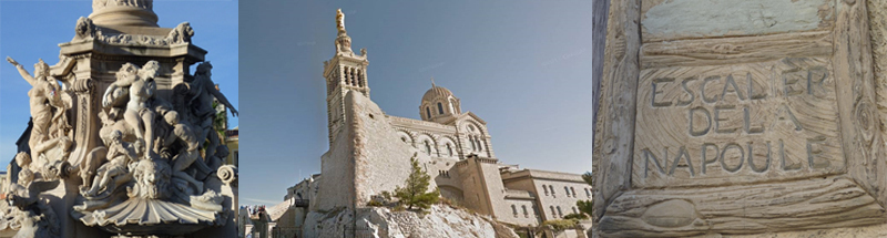 Vous aurez, par la suite, à traverser le quartier du Roucas par une enfilade de petites rues étroites et sinueuses, de traverses, et d’escaliers pentus. Ce sera l’occasion d’observer les Villas et Folies construites au 19ème siècle par les riches familles industrielles et commerçantes marseillaises, dans les jardins desquelles s’exprimait l’art de la Rocaille, en particulier la villa Santa Luccia, en haut de l’éprouvante Montée de la Napoule (que vous vous contenterez de descendre !).