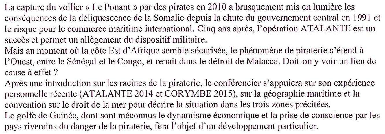 Conférence "La piraterie maritime, du détroit de Malacca au golfe de