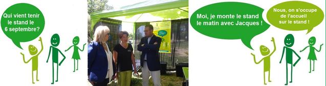 - monter et démonter le stand (petite tonnelle verte avec mobilier et affiches),