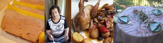 champagne, foie gras de canard, cailles aux raisins et marrons, bûche...