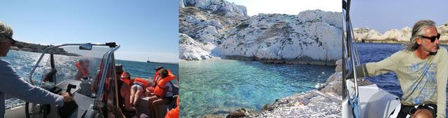 Toute l'année, il accompagne en mer des touristes, des croisiéristes, des familles, des amis ou des groupes d'enfants dans des sorties en semi-rigide ou en barque marseillaise, du Vieux-Port au Frioul et aux Calanques.
