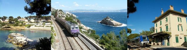 Au départ de Marseille en destination de Miramas le train de la Côte Bleue parcourt 32 km en surplomb du littoral.