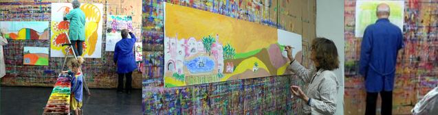 5 adhérents sont conviés à tester un atelier de peinture de l'association