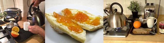 Elle vous recevra, sans chichi, dans sa cuisine autour d'un thé, d'un café ou d'une tisane du Père Blaize. Elle pourra aussi vous presser un jus d'orange et vous proposer des tartines "beurre salé et confiture".