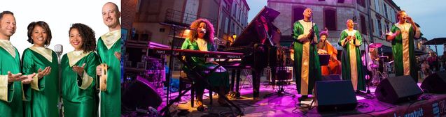 Au programme, le "New Orleans Gospel Quartet" qui est l’un des meilleurs groupes de gospel du sud de la France. Il réunit quatre chanteurs de la scène gospel européenne accompagnés par une rythmique dynamique (piano, batterie, contrebasse et guitare). Dirigés par la talentueuse chanteuse-pianiste Flora Sicot, ils partagent leur amour du gospel à travers un répertoire original de classiques revisités et de reprises de groupes-phares des années 60, tels que "The Jackson Southernaires", "The Barrett Sisters", "The Blind Boys of Alabama", "The Pointer Sisters" ou les célèbres "The Davis Sisters" de Philadelphie et bien d’autres comme Curtis Mayfield, Mahalia Jackson, Lavern Baker...