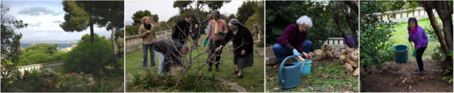 Les membres de l'association se sont donc spontanément proposés pour leur venir en aide et embellir leur propriété tout en profitant du lieu. Depuis lors, nos adhérents se retrouvent de façon récurrente dans le jardin de la communauté, merveilleusement situé, avec une vue exceptionnelle sur les îles de Marseille.