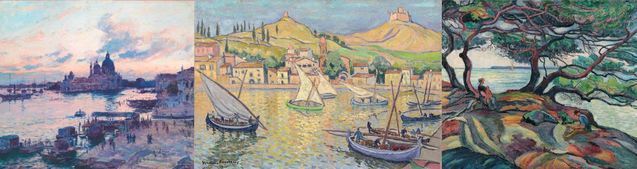 Près de 80 œuvres invitent à un parcours pictural , grâce aux regards d’artistes des XIXème et XXème siècles comme Camoin, Friesz, Guillaumin, Lebasque, Marquet, Martin, Olive, Peske, Picabia, Seyssaud, Valtat, Verdilhan, Ziem... qui célèbrent un art de vivre méditerranéen, où l’élément humain tient une place prépondérante. Autant d’artistes qui vinrent poser leur chevalet dans ces escales, inspirés par le pittoresque de certaines villes, l’animation des ports, la géographie exceptionnelle du littoral, entre calanques et collines. Autant d’approches qui mêlent romantisme, réalisme, néo-impressionnisme, divisionnisme, fauvisme, pointillisme et expressionnisme, et forment la trame narrative de ces dix étapes.