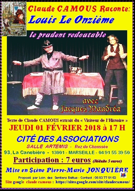 Claude Camous, stoïque "Visiteur de l’Histoire", ne semble pourtant pas le craindre et entend bien l’interroger sur ses terribles "Fillettes", et sur bien d’autres sujets délicats, n’hésitant pas quelquefois à franchir la "ligne jaune". Jacques Mandréa campe avec brio, un Louis XI plus vrai que nature, à la fois drôle, émouvant et terrifiant, dans une mise en scène habile de Pierre-Marie Jonquière.