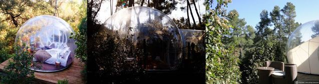 Les bulles sont parfaitement intégrées au paysage environnant. Certaines sont totalement transparentes pour une immersion totale en pleine nature, certaines ont les côtés opaques pour plus d'intimité.