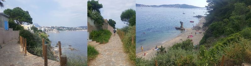 Après le pique-nique, la baignade et la sieste, il faudra fixer une heure pour nous retrouver sur le sentier littoral, par exemple à la table d'orientation, pour continuer ensemble le chemin et rejoindre l'arrêt de bus qui nous permettra de revenir à la gare de Toulon.