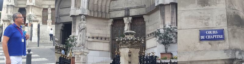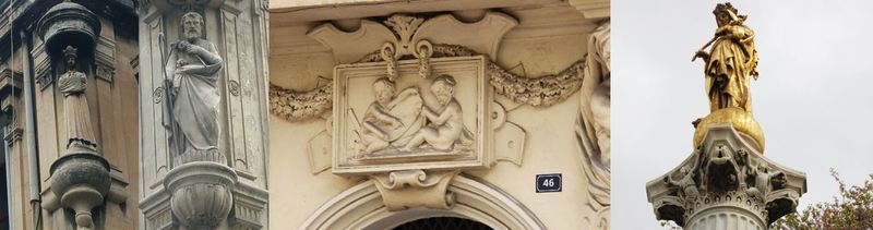 Déambulation autour des saints d'angles, statues et bas reliefs religieux,