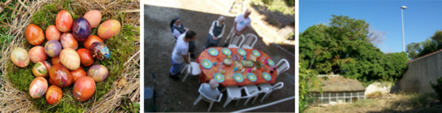 Chacun apportera un plat salé ou sucré à partager, une boisson (vin ou boisson sans alcool) et si possible un peu de vaisselle jetable. Ceux qui veulent participer à la partie de chasse aux œufs devront apporter un petit paquet d'œufs sucrés, de cocottes ou autres friandises que nos animateurs cacheront dans le jardin et que tout le monde cherchera ensuite.