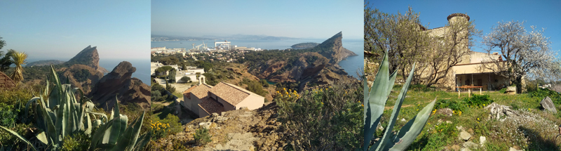 Derrière la chapelle, un petit escalier permet de grimper jusque sur le sommet du Mont Saint Pilon qui offre une vue impressionnante à 360°, d'un côté sur la Ciotat, le Bec de l'Aigle et les Trois Secs, de l'autre sur les falaises Soubeyrannes et encore plus loin jusqu'à l'archipel de Riou. Nous poursuivrons notre randonnée par la visite d'un domaine remarquable, l'ancienne propriété de Michel Simon qui était "tombé amoureux" de la petite cité ouvrière, berceau du cinéma... avec son belvédère à flanc de falaise, sa bastide du XVIIIème siècle et ses vues exceptionnelles... Domaine resté vivant grâce aux "Amis de Michel Simon"... Toute une histoire qui vous sera racontée...